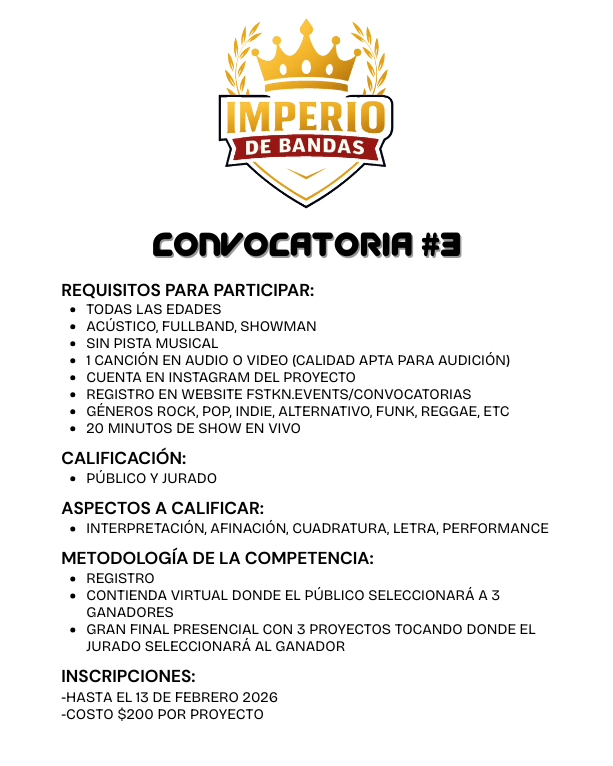 Ficha de pago para registro en Imperio de Bandas 3